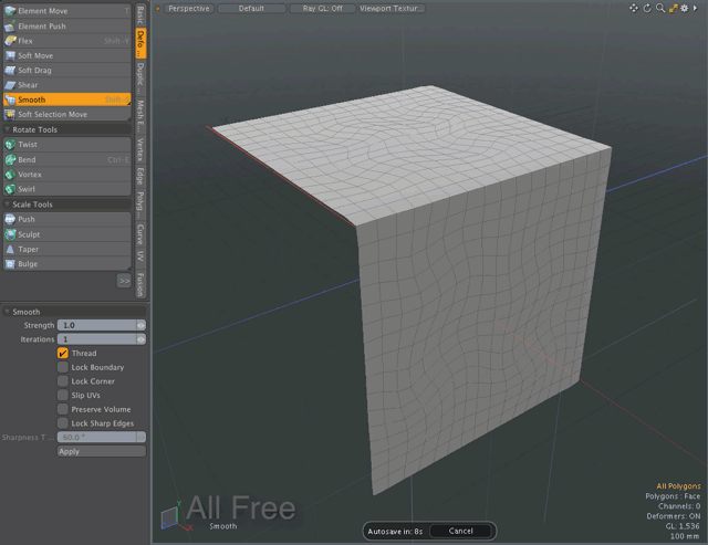• Editメニュー:クリックEdit > Deform > Smooth。