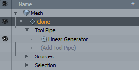 • Tool Pipe -操作にサブツールを追加できます。クローンツールでは、リニアジェネレーターがデフォルトで追加されます。