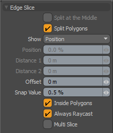 とともにEdge Sliceエッジからエッジへクリックして、エッジの間にスライスを作成するツール。エッジをクリックした後、エッジの長さに沿ってドラッグして、正確なカット位置を設定できます。また、目的のカットポイントを表すハンドルポイントを直接クリックして新しい場所にドラッグすることにより、以前に作成したエッジカットを編集することもできます。