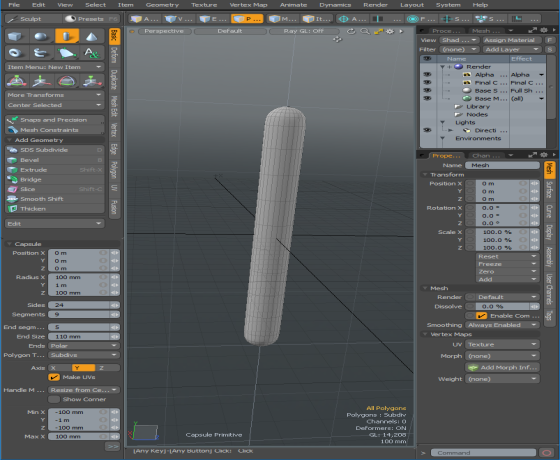 | 1. | 背の高い薄いカプセルプリミティブを追加します。 |