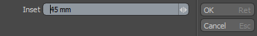 インセット値は、新しく生成されたポリゴンの収縮距離を決定し、オリジナル内にフレーム化された、より小さなまたはより大きな四角ポリゴンを作成します。インセット値はすべてのエッジに適用されます。