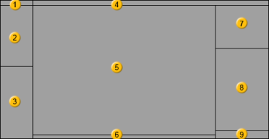 一番上のバーを水平方向に1回、下のウィンドウを2回分割して、3列にします。これらの各列を垂直方向に1回分割し、右側の列でさらに分割します。レイアウトが上記のテンプレートを大まかに模倣するように、ビューポートフレームを配置します。