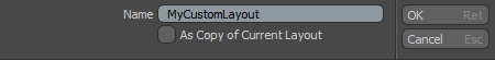 | 1. | メニューバーで、 Layout > New,ポップアップウィンドウに一意の名前を入力し、 As Copy of Current Layoutオプションは無効です。 |