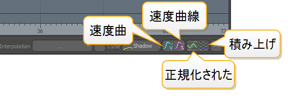 注意: 速度曲線は、チャネルが属するアイテムのローカルスペースを参照します。アイテムが別の移動アイテムの親である、モディファイアが適用されている、またはアイテムに他の位置変換アイテムがある場合、シーン内のアイテムのワールドスピードを表しません。