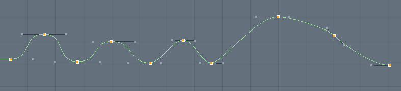 グラフエディターは、システムがこれらの中間のキー値をどのように補間するかを制御します。