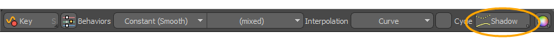 のShadowこの機能は、現在選択されているすべてのチャネルのキーグラフの代替バージョンを保存するために機能し、曲線の便利で非破壊的な編集を可能にします。の選択Copy to Shadowオプションを使用すると、それらがフェードバックグラウンドビューに追加され、キーを視覚的に調整し続けて、以前のシャドウ値に対する現在の変更を確認できます。その後、キーを調整し、タイムラインをスクラブまたは再生して、結果を確認できます。を押すShadowボタンをクリックすると、次のオプションを含むポップアップメニューが開きます。