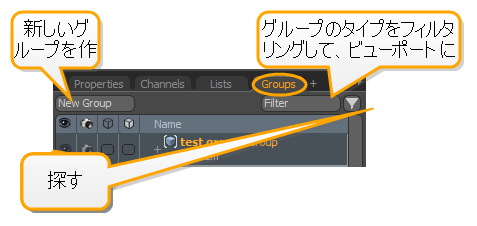 に表示するグループのタイプをフィルタリングできますGroupsビューポート。