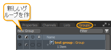 • Add Items/Channels -アイテムリストまたは3Dビューポートから現在選択されているすべてのアイテム、またはチャンネルビューポートからのチャンネルを、選択されたグループに追加します。