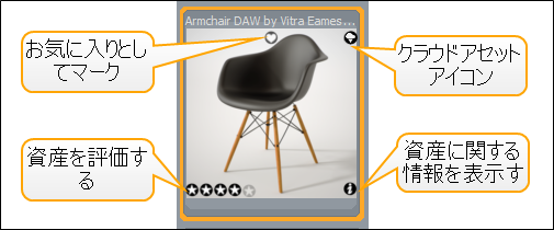 アセットをお気に入りとしてマークし、アセットを評価して、アセットに関する情報を確認できます。
