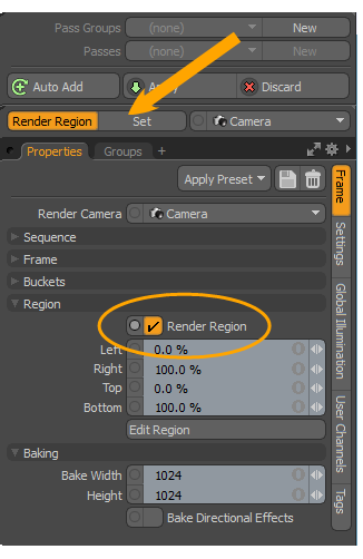 • 切り替えEnable OptionツールのPropertiesパネルまたは無効にするRender RegionのオプションRenderアイテムのFrameサブタブ。