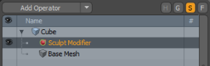 | 3. | スカルプトモディファイヤをスカルプトレイヤに接続するには、レイヤの名前と一致するように名前を変更します。 |