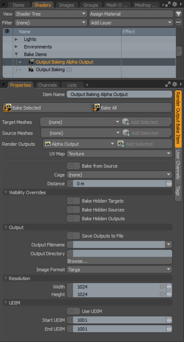 新しいBake Itemに追加されますShader Tree、 の中にBake Itemsセクション。