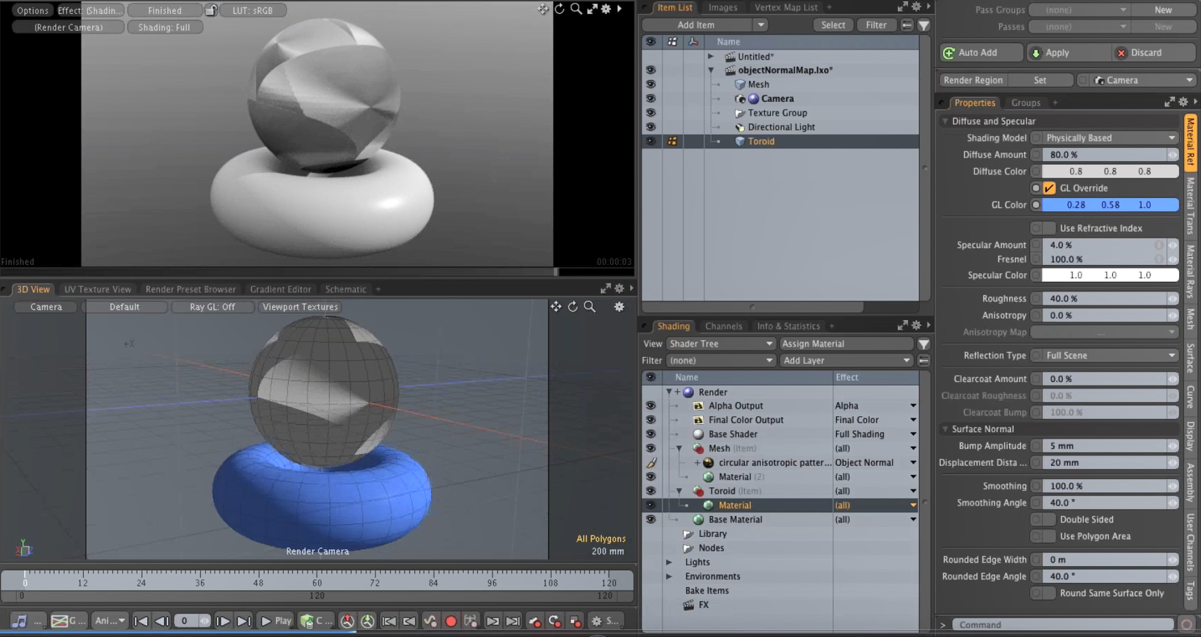 最終的なレンダリングのために、ライトとサーフェシングの属性を評価する方法を制御します。これらのシェーディングモデルは、双方向反射率分布関数またはBRDFとも呼ばれます。各シェーディングモデルは、レンダリング中に鏡面反射光、フレネル、反射、照明の減衰がどのように計算されるかを微妙に変更します。 • Physically Based -最も忠実なハイライト形状とフレネルフォールオフシェーディングを示し、リアルな表面シェーディングを生成する機能があることから、多くの有名な映画スタジオで普及したGeneralized Trowbridge-Reitz BRDFモデルに基づいています。 • Traditional -サーフェスを使用してレンダリングされたものと一致させることができますModoPhong-Blinnモデルに基づいたのレガシーBRDF。 • Energy Conserving -拡散/鏡面反射/反射の混合を自動的に制御してリアルなシェーディング結果を生成しますが、ほとんどの場合、優れた結果を得るために物理ベースモデルに取って代わられます。これは、 Conserve Energyオプションが有効になりました。これは、Ashikhmin-Shirley BRDFに基づいています。このオプションは、一部のマテリアルで使用できます。たとえば、 Conserve Energy。 • Principled -物理的に原理的なBRDFプロパティを使用できます。 |