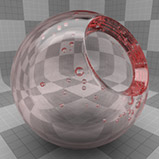 着色された透明な表面は、多くの場合、着色を示しません。薄い領域は無色に見え、厚い領域は色がかっています。のAbsorption Distanceこの効果を制御し、光線を100%取得するために光線が移動する距離を決定します。 Transparency Color。フォールオフは、実世界と同様に、ビールの法則によって決定されます。 |