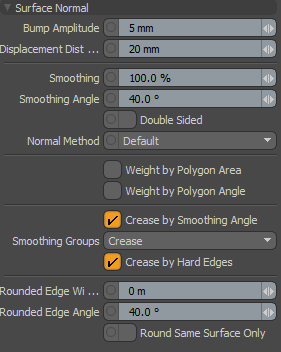 エッジの鋭さに基づいて、どのエッジを丸く表示するかを制御します。具体的には、隣接するポリゴンのサーフェス法線が、 Rounded Edge Angle設定。デフォルト値は40度です。設定を0度に下げると、すべてのエッジが丸く表示されます。 |