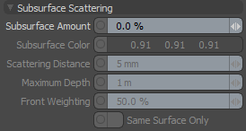 次の設定はボリュームアイテムにのみ適用され、それ以外の場合はサーフェスに影響を与えません。同様に、次のような他の表面属性Diffuse ColorそしてReflection Amountボリュームアイテムには影響しません。ボリュームアイテムには、以下の値の倍数として機能する同様のオプションも含まれており、追加の微調整オプションを使用できます。