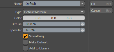 • Make Default -すべての新しいマテリアルのデフォルトマテリアルとして設定します。