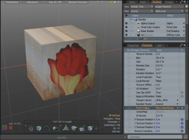 ヒント:  プロジェクションマッピングのタイプを設定できます。 Front CullingのオプションChannelsタブ。を開くShadingタブで、追加したプロジェクトイメージを選択し、 ValueのフィールドFront Culling。次のオプションを使用できます。