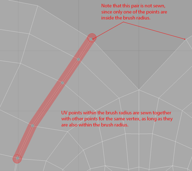 注意: ブラシの半径内にあるUVポイントは、ブラシの半径内にある限り、同じ頂点の他のポイントと一緒に縫い合わされます。![]()