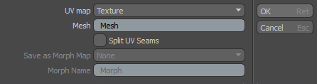 選択したジオメトリに沿って(選択したエッジに沿って、ポリゴン選択境界の周りに、または頂点上で)UVを分割できます。 UV分割の距離を指定できます。クリックShift次にクリックしますSplitツールボックス。のUV Splitダイアログが表示されます。距離を指定し、分割するUVを描画します。これはUVをオフセットしませんが、一度分割すると、ポリゴンを個別に移動できます。