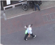 下の図では、画面の中央にいる女性が通りを左から右に歩いているときに女性を削除しようとしています。このフレームでは、男性が反対方向に歩き、足と頭が重なります。