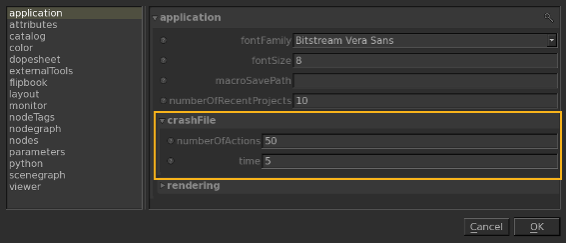 The crashFile gives you two options, numberOfActions and time, to choose how frequently you want an autosave of your current scene to take place.