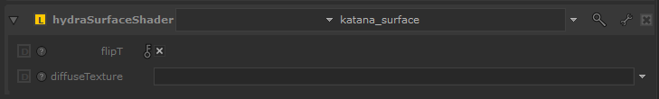 | 3. | In the Parameters tab, add a hydra surface shader and select the katana_surface option. |