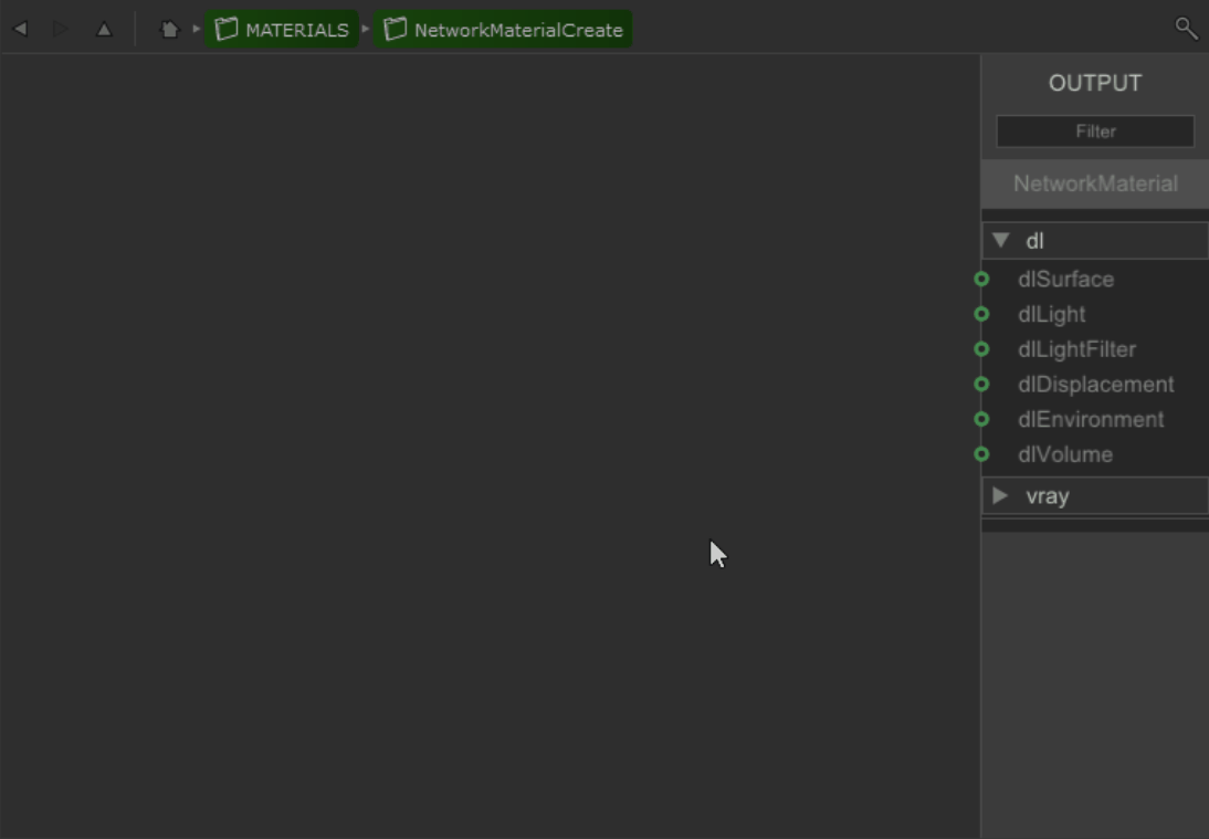 At the top of this bar there is a Filter which allows you to enter a string to search for a specific terminal. For example, start typing ‘displacement’ and the list filters down to only show the terminals containing the word displacement. This is useful especially if you have multiple renderers set up.