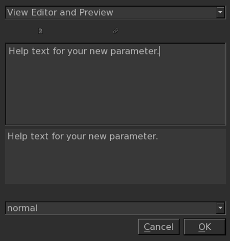 You can also generate help text for a user parameter programmatically instead of setting it through the UI. To do this, set the help text string like the example below: