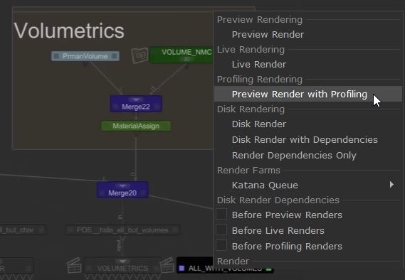 - Render the scene by right-clicking a render node and selecting Preview Render with Profiling.