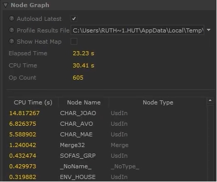 If you're still not sure where optimizations can improve your scene, you can send the Profile Results File to a colleague for analysis. Profiling data is automatically saved as .json files to the KATANA_TMPDIR location.