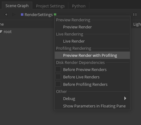 Geolib3-MT adds a new render type, called Preview Render with Profiling, designed to help track down performance problems in scene traversal. This performs a normal Preview Render, but also captures information about which Ops have run, the amount of CPU used by them to cook locations, and the amount of memory used for attributes and Lua scripts.