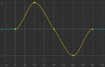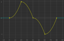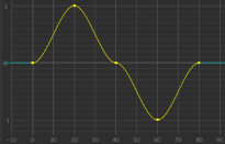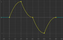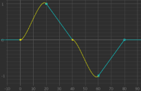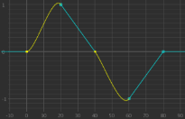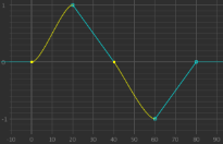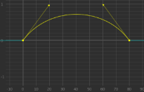 The bezier segment function is the most versatile. It uses four points - the keyframes at the start and end, and two control points - to define the segment. The control point position is shown with an arrowhead. The weight of a control point, which determines how strong its influence is over the generated curve, is determined by the length of the handle.