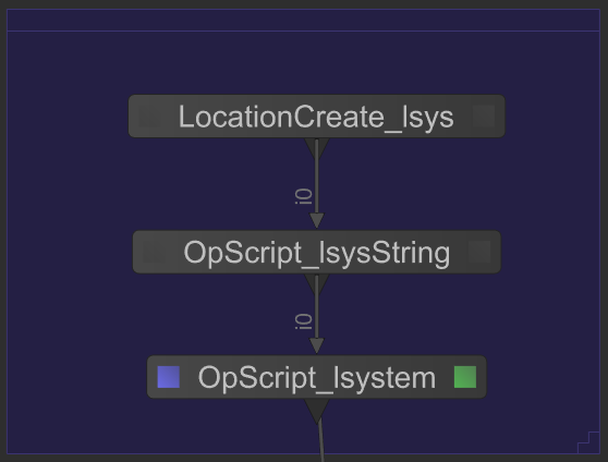 To provide a concrete example, in the following screenshot OpScript_lsysString produces a costly L-system description at the scene graph location /root/world/geo/lsys. The node OpScript_lsystem then processes this description to build a graphical representation of the tree.