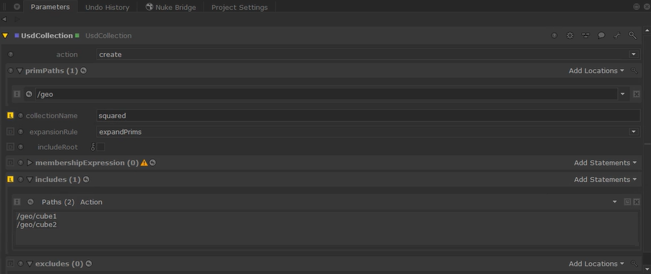 The UsdCollection node has two modes that are found in the action parameter’s dropdown: create and edit.