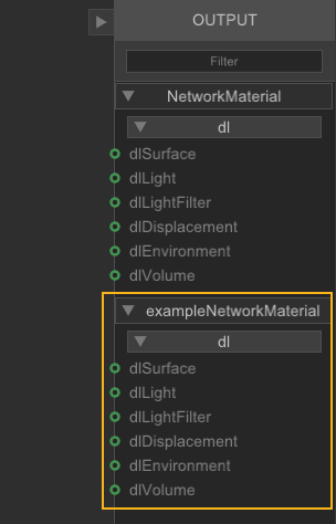 Note: For more information about the NetworkMaterialCreate node parameters, see NetworkMaterialCreate.