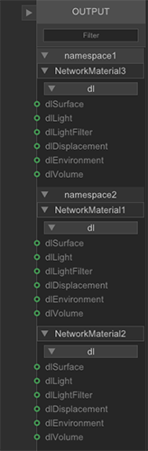 NetworkMaterials and Namespaces organized in the Material Scenegraph |