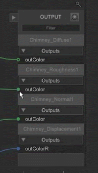 Tip:  The INPUT and OUTPUT bars are filterable in the same way as the terminals on a NetworkMaterialCreate node. Enter a string in the Filter bar to search.