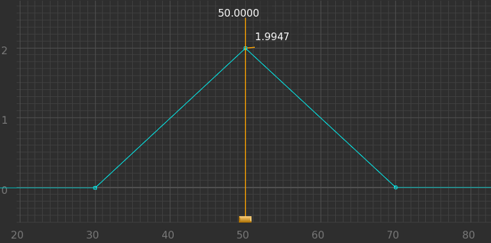 Two keyframes on frames zero and fifty with a linear segment function applied to the first. The most versatile segment function is the bezier curve; it uses a mathematical formula to calculate a curve between two anchor points. Bezier curves use four points to interpolate a curve: two anchor points (these are the keyframes) and two control points.