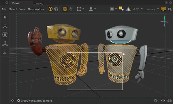 Scenes rendered in Katana include scene graph location information for each pixel in the rendered image. Image-Based Selection allows you to access this information when viewing a render from the Monitor Layer within the Hydra Viewer.
