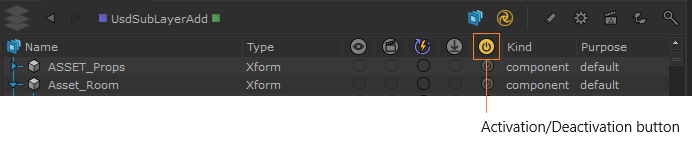 Note: There may be other combinations due to the interplay of the Scene Explorer Active column control with the USD, but inactivity is essentially indicated by a light-grey power symbol. A color-filled circle means that the active status is being controlled by the Scene Explorer.