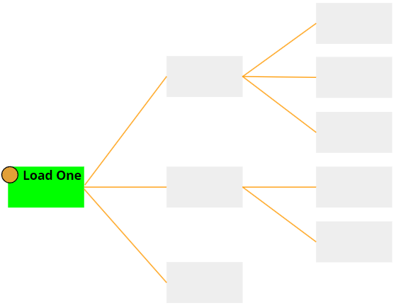 A combination of payload rules on a simple graph. The leftmost node has a Load None rule but if present the payload would be loaded as there is a downstream Load One rule.