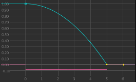 Between frames 0 and 5, the acceleration curve shows a consistent force is acting on the parameter (the acceleration curve is straight).
