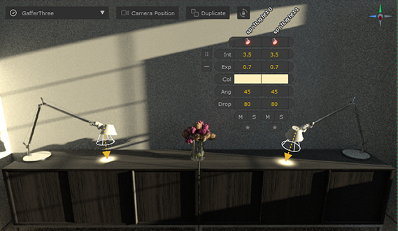 In this example we have two lamp objects and want to place Spot Lights to resemble the light bulbs. One Spot Light is set up so we can use the Clone option to create the second light.