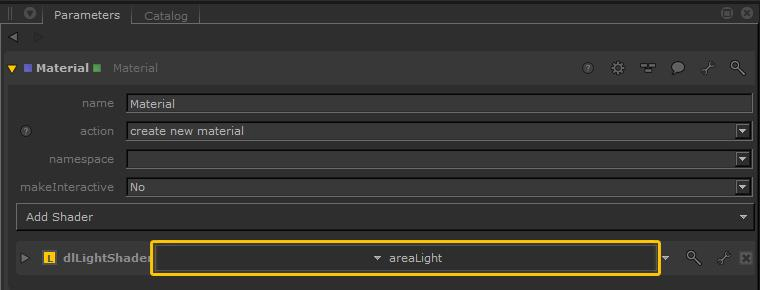 | 4. | Select Add shader > dl> light within the Material node’s Parameters tab. |