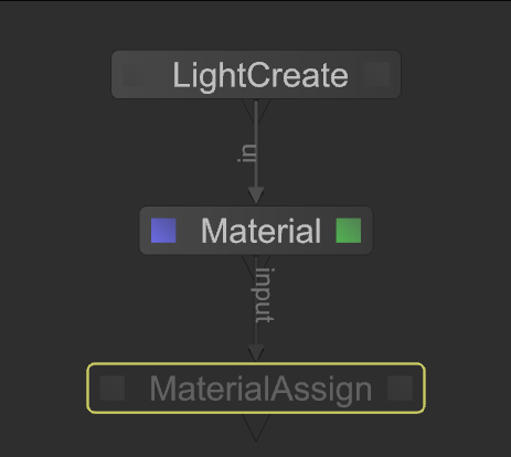 | 2. | Create a Material node and connect the output of the LightCreate node to the input of the Material node. |