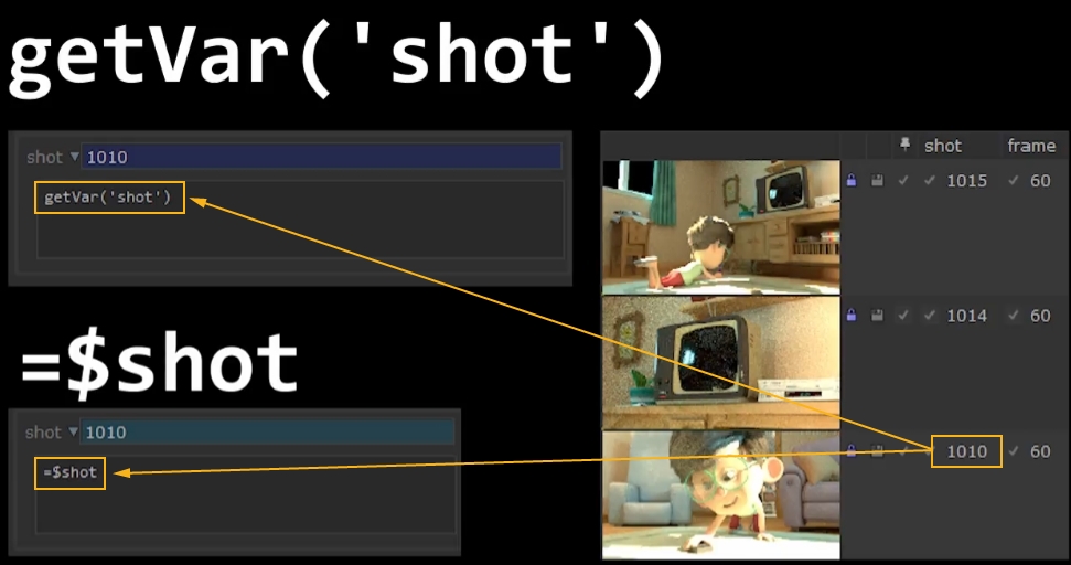 The new getVar('shot') variable that references