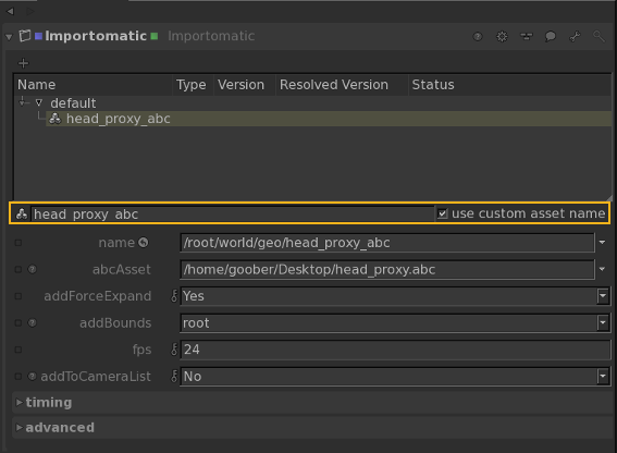 Changing the asset’s name within the Importomatic does not influence its location within the Scene Graph tab.