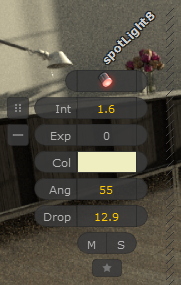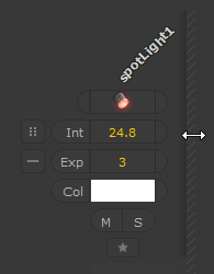 The light parameters widget provides quick access to the Intensity, Exposure and Color parameters for your lights. You may want to customize this widget to display more parameters, specific to the light type you create. This allows you to further streamline your workflow by adding the parameters you use the most.