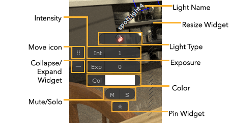 • Click the star button to pin a light parameter widget, preventing the light parameter widget from closing when the light is deselected.